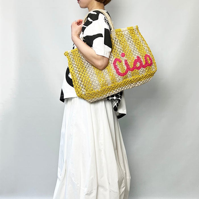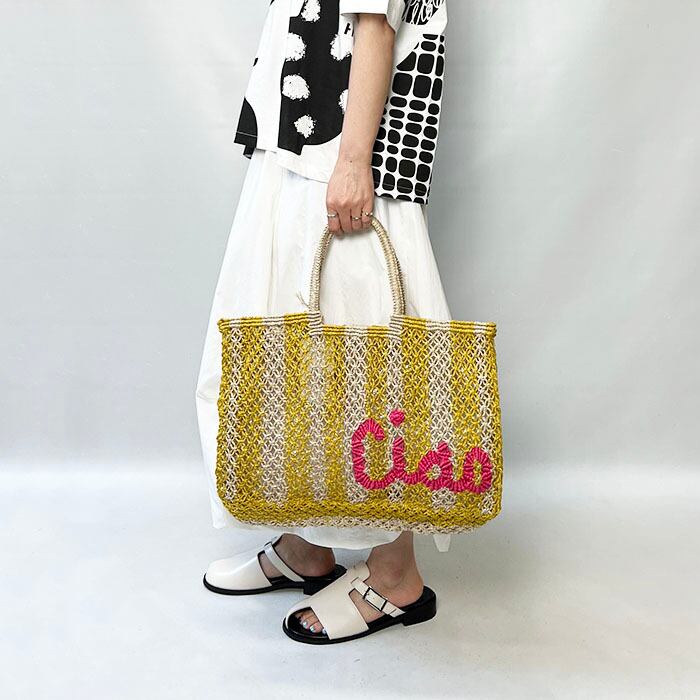 現地の女性たちによってマクラメ編みのテクニックで全てハンドメイドで製作されています。