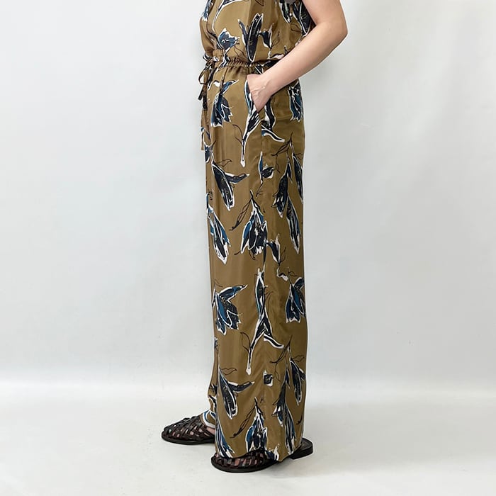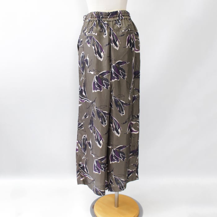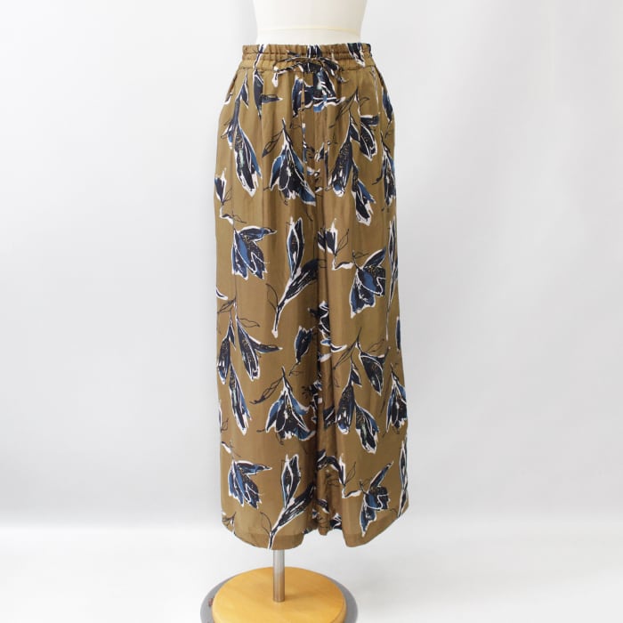 秋を感じさせる深みのある色合いが魅力のSACRAオリジナルプリントのワイドパンツ。