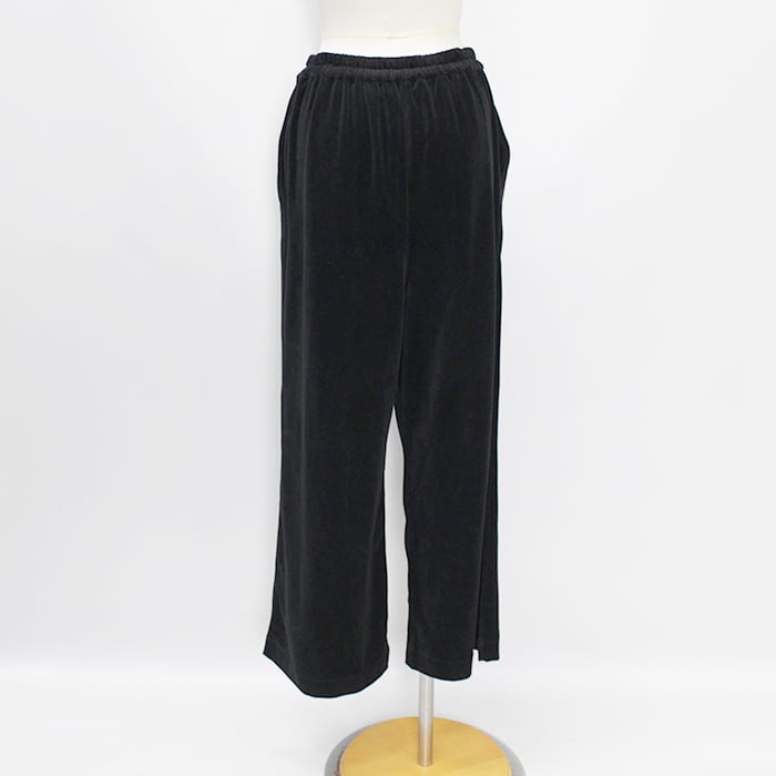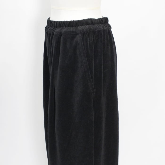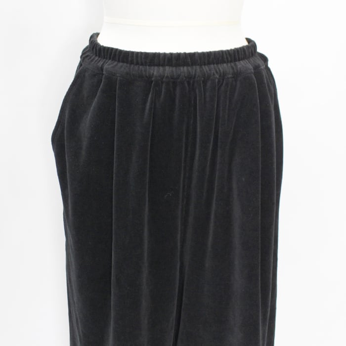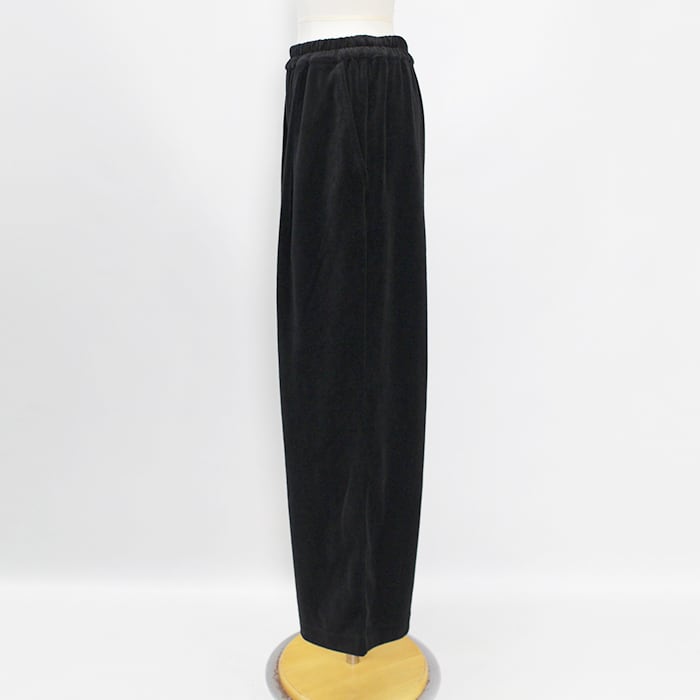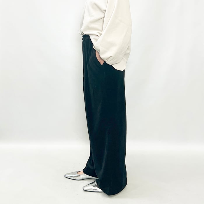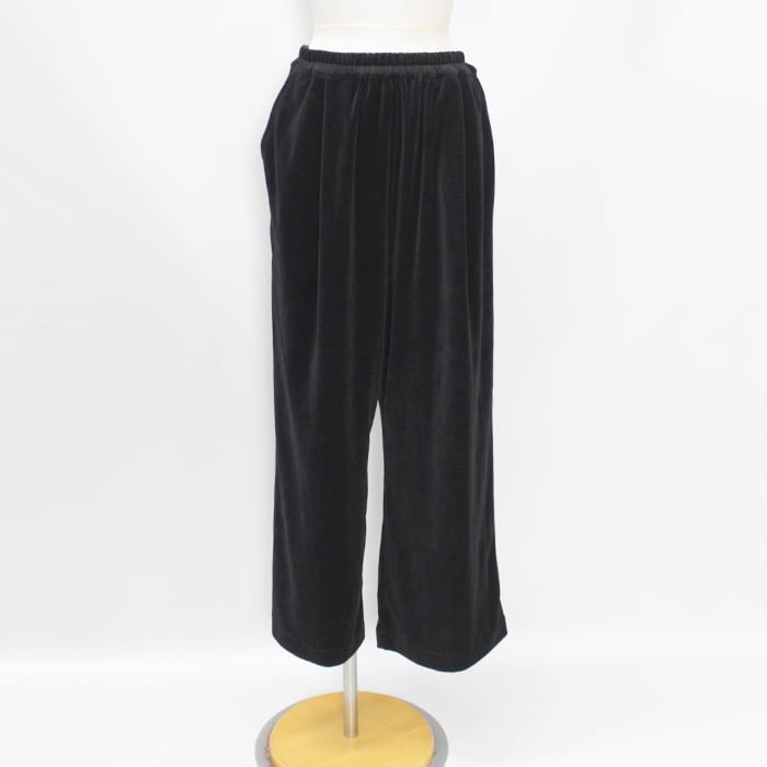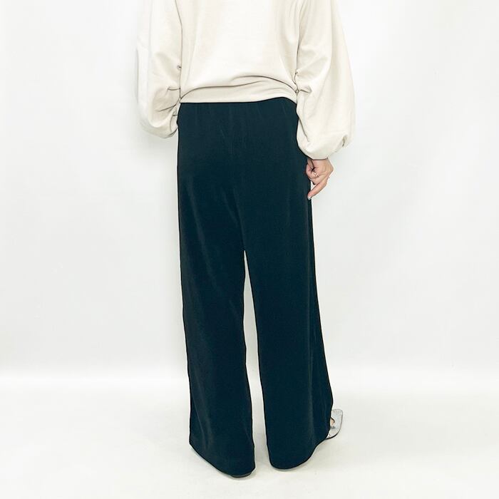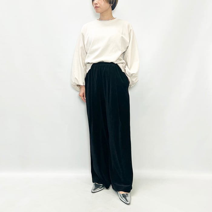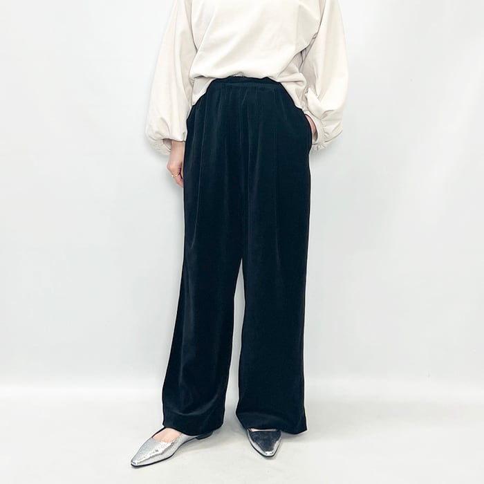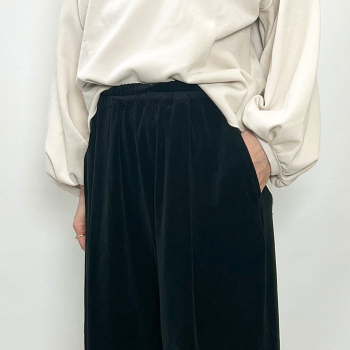 上品な光沢と落ち感があり、ラフになりすぎず洗練された印象のベロアパンツ。