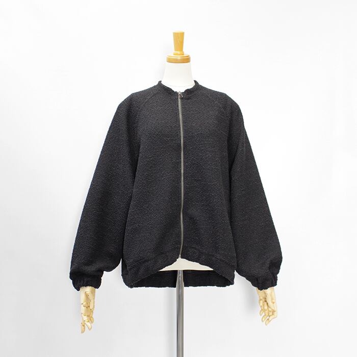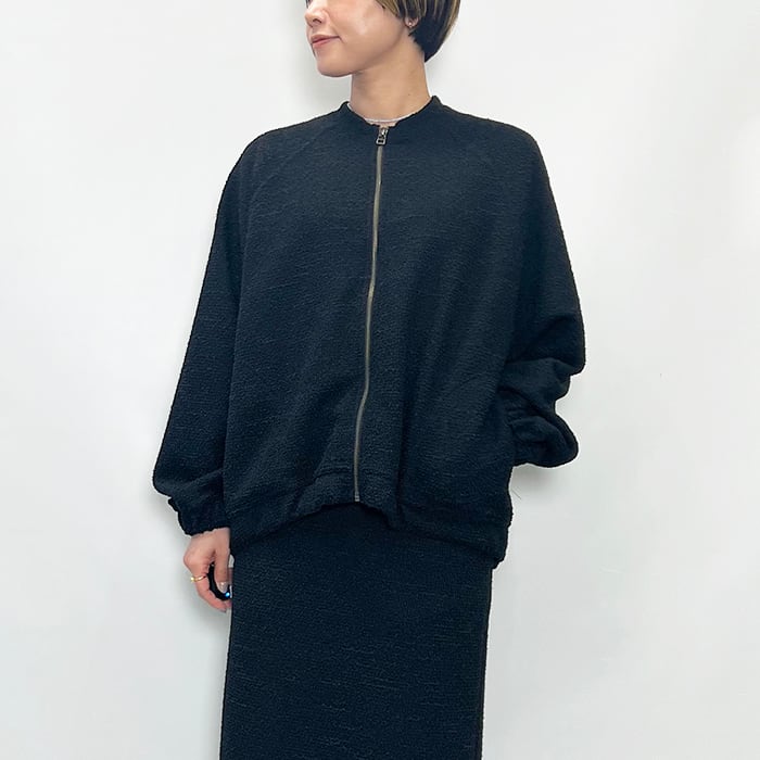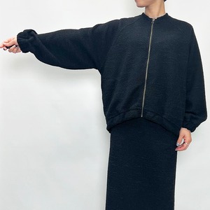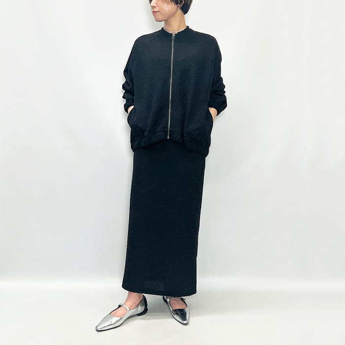 フロントジップによるカジュアルさと、素材の持つエレガントさを兼ね備えた着映えのするアイテムです。