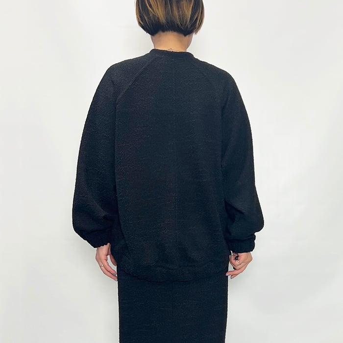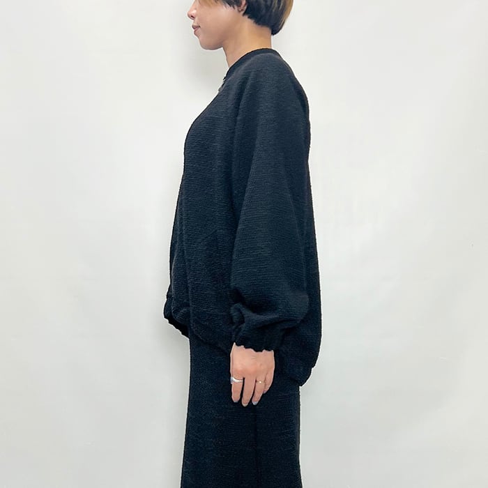 モコモコとした表面感で適度なボリューム感がありながら、コットンが入った爽やかで軽い風合いのニットツイード素材で季節の変わり目に活躍します。