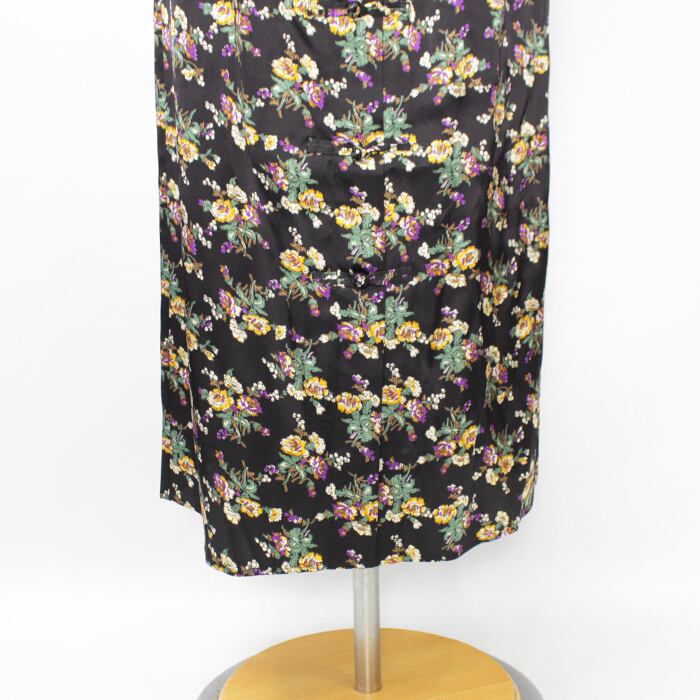 レーヨン100%の控えめな光沢感のサテン生地にフラワーブーケ柄をプリント。