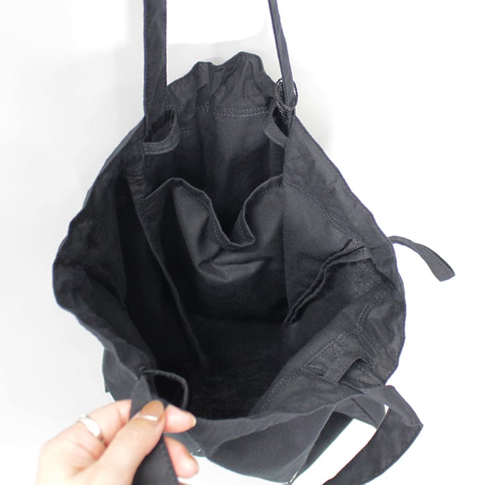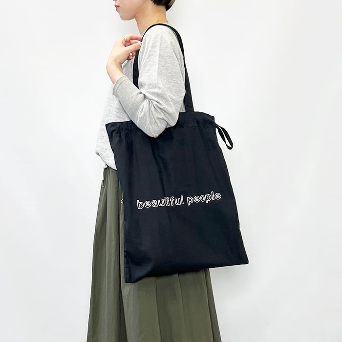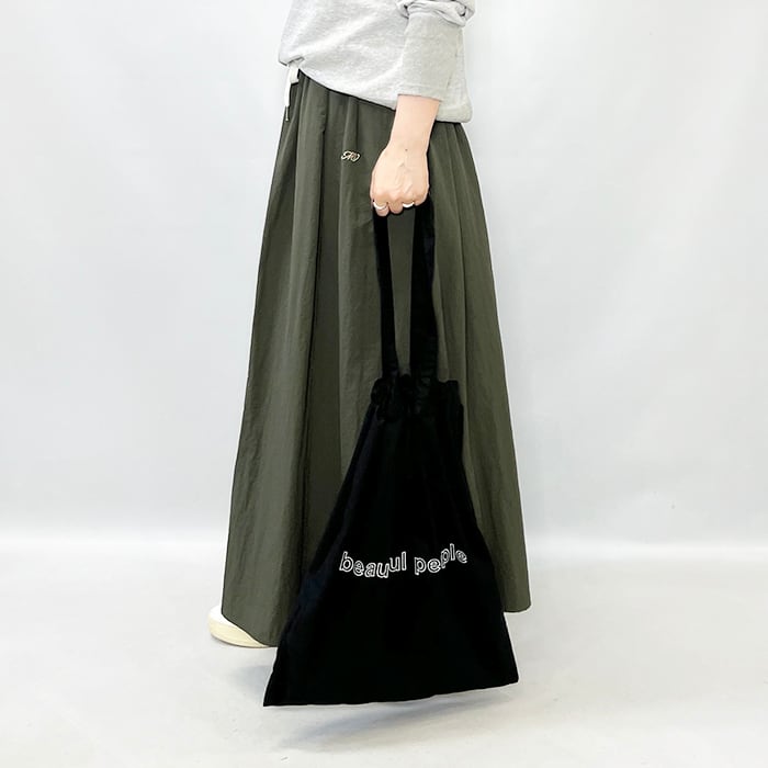 大きなサイズ感+口が閉じられる巾着仕様の為、気軽に使用出来るのがポイント。