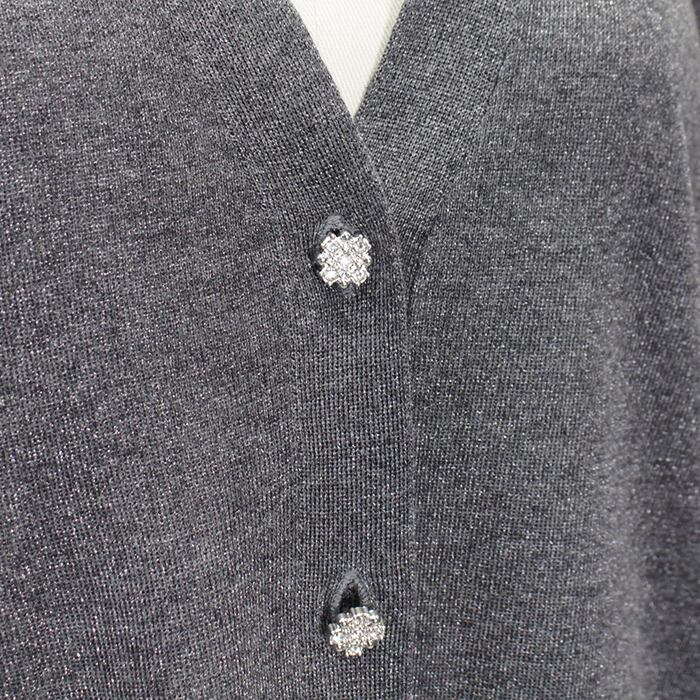 少し深めのVネックラインとゴールドボタンが上品な印象をプラス。