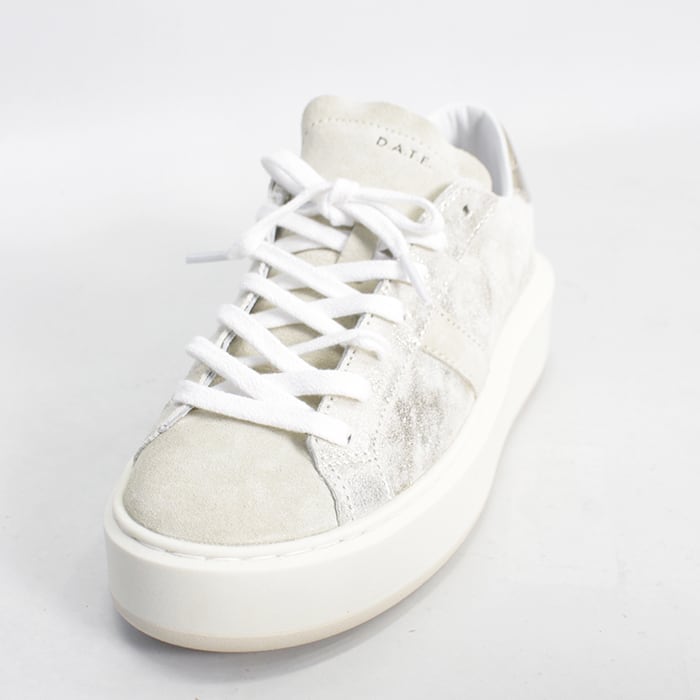 高品質なホワイトレザーとメタリックアクセントでモダンな印象。
