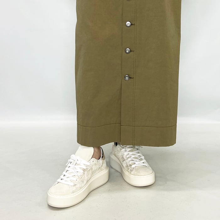ボリューム感のある厚底ソールが特徴のローカットスニーカー。