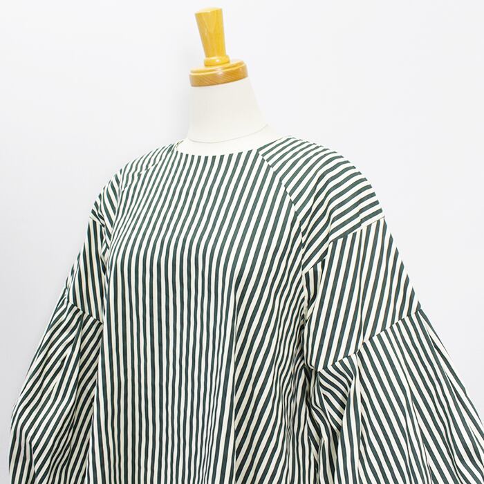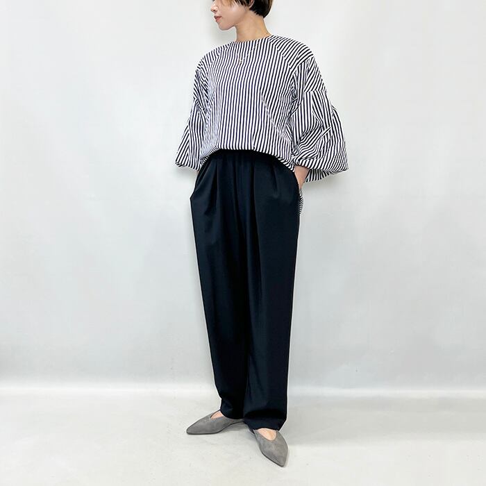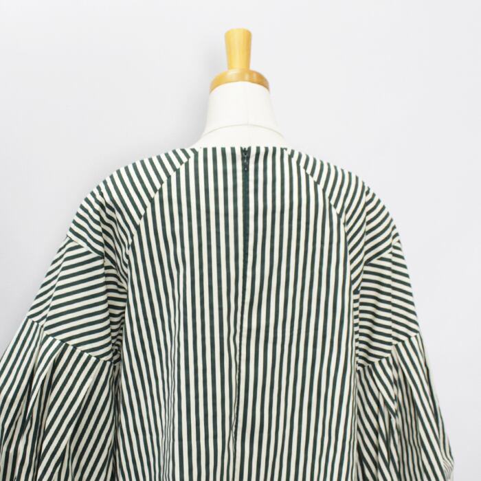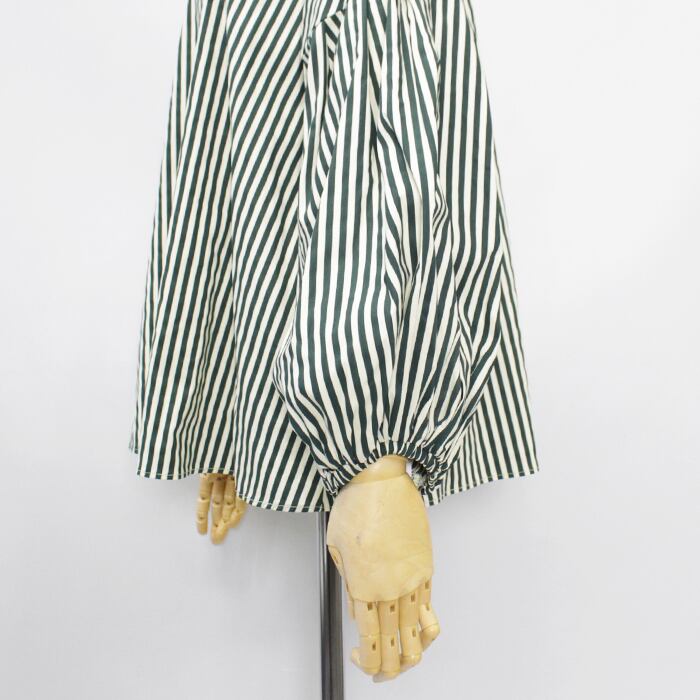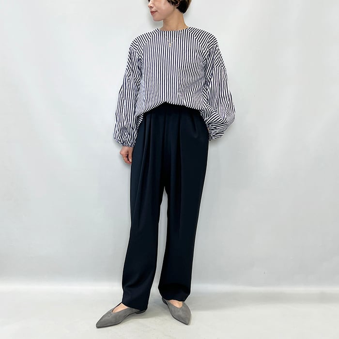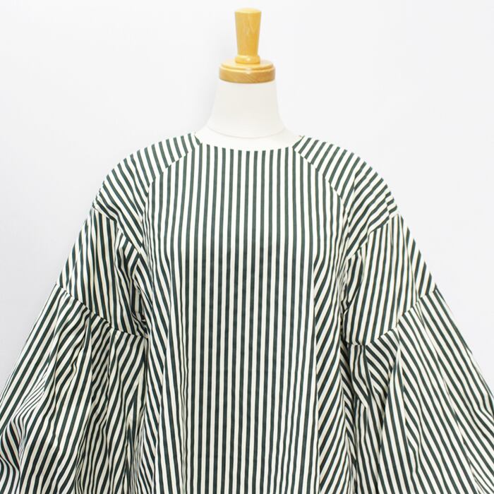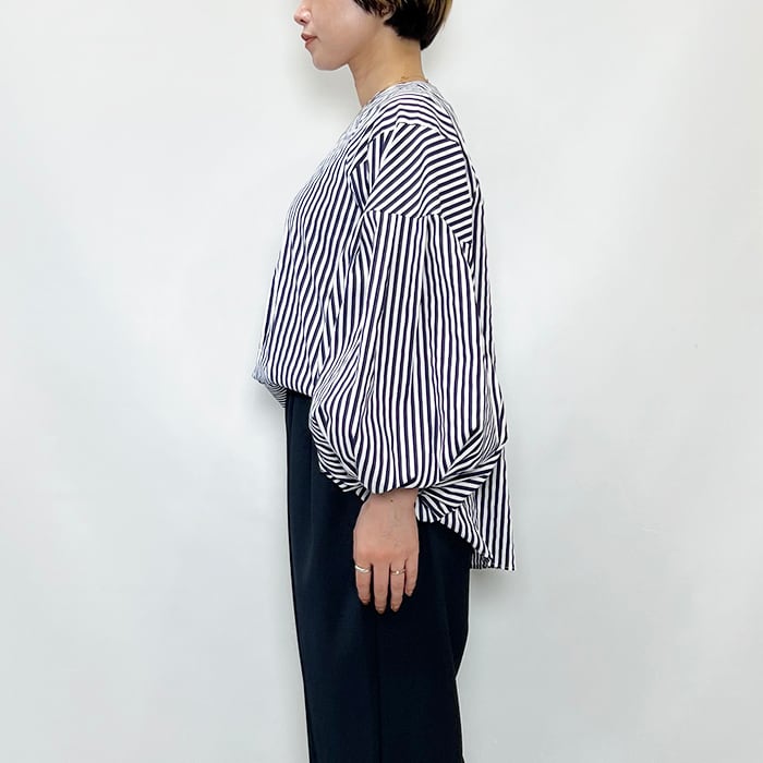 爽やかなストライプが目を惹くボリュムスリーブブラウス。