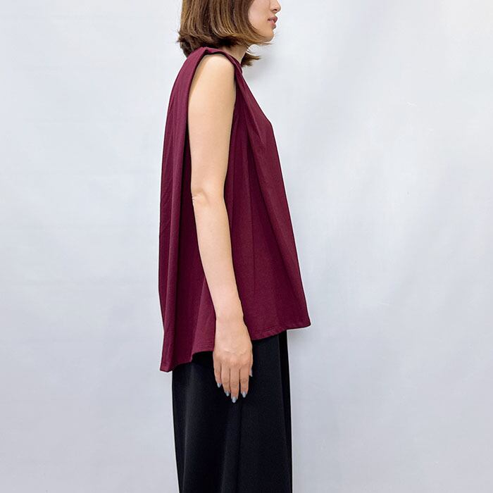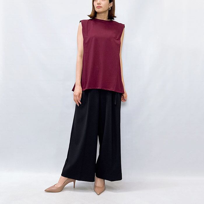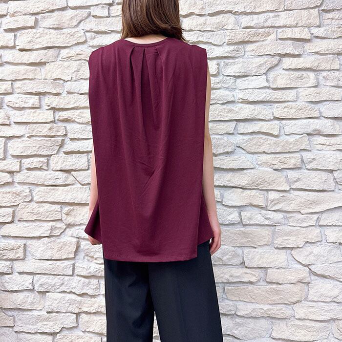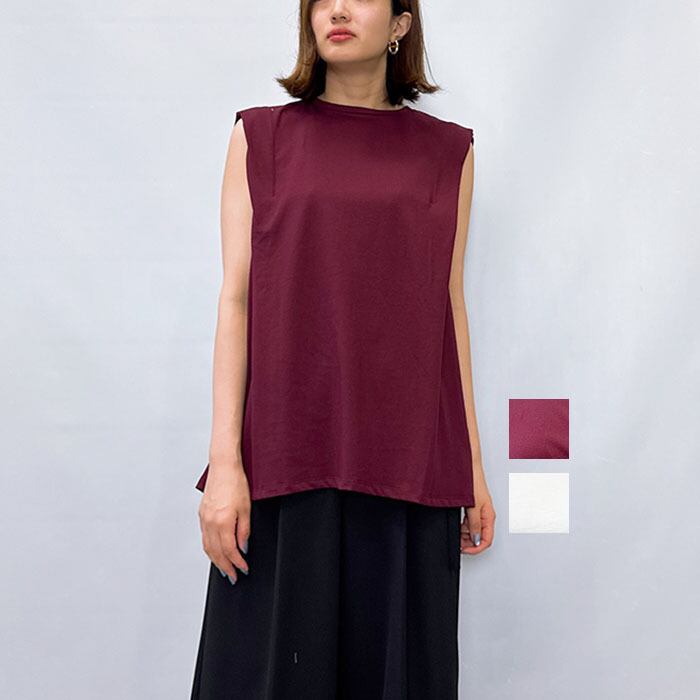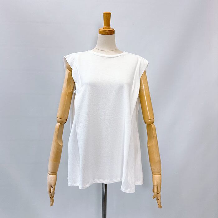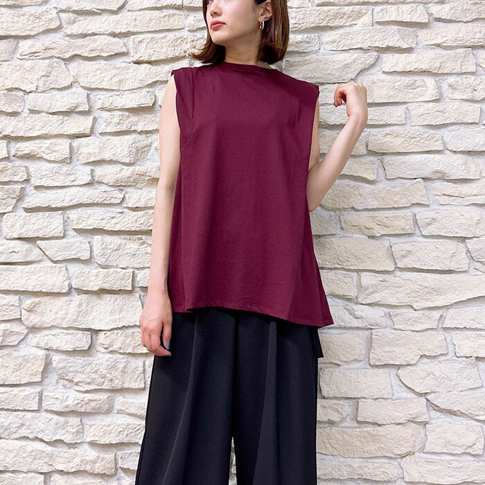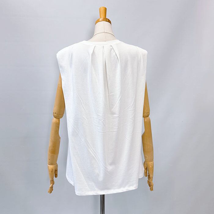 汗染みを防止する機能素材を使用したノースリーブカットソー。