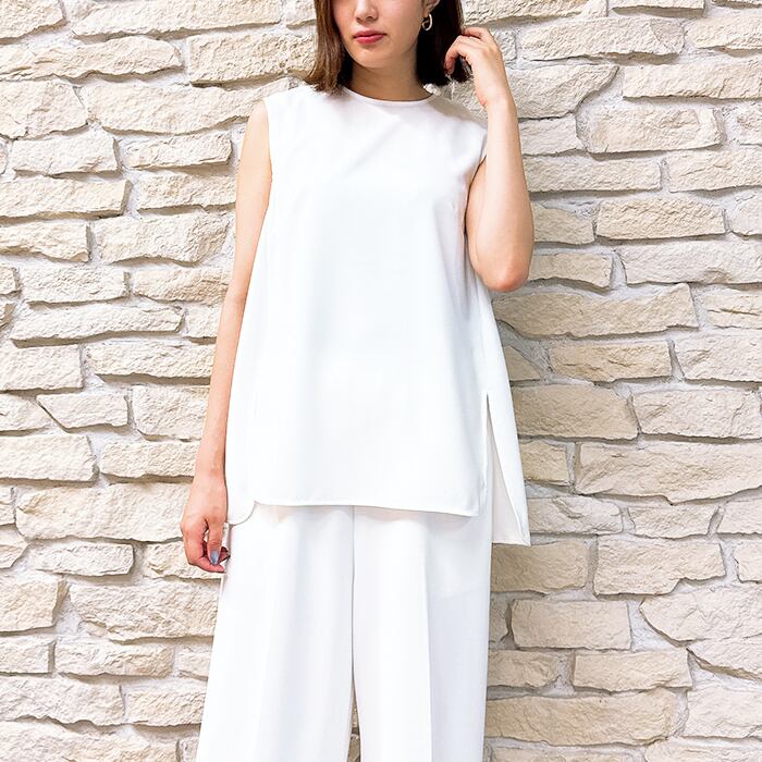ソフトな風合いと程よい落ち感のジョーゼット素材のタンクブラウス。