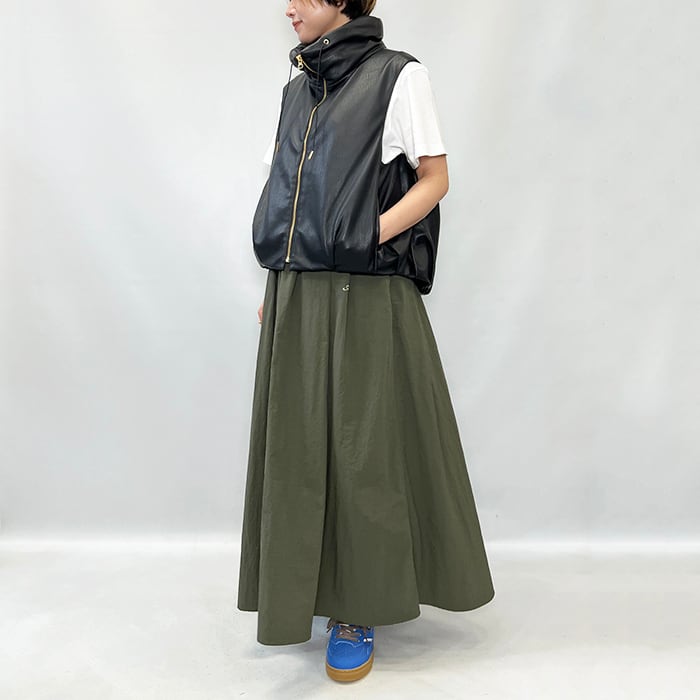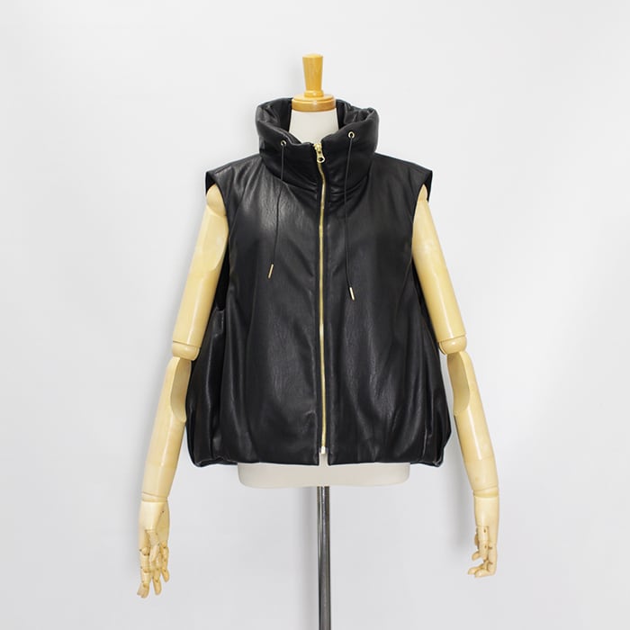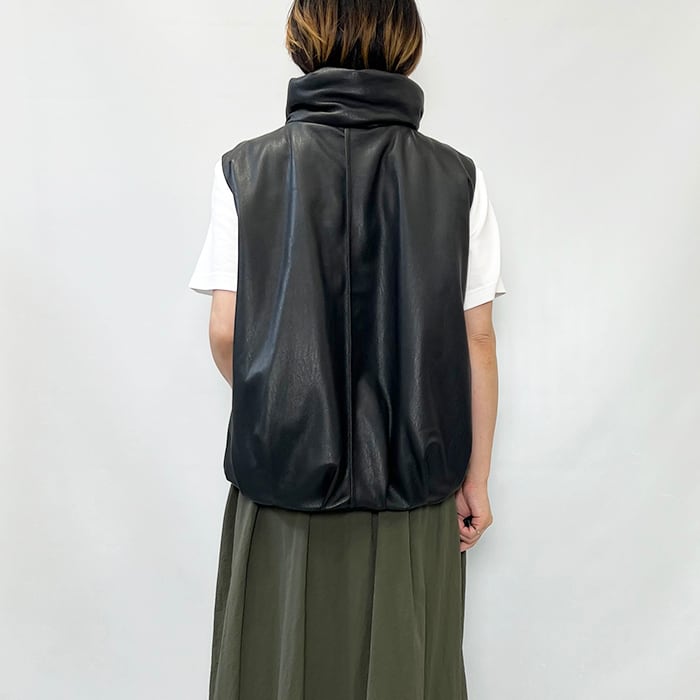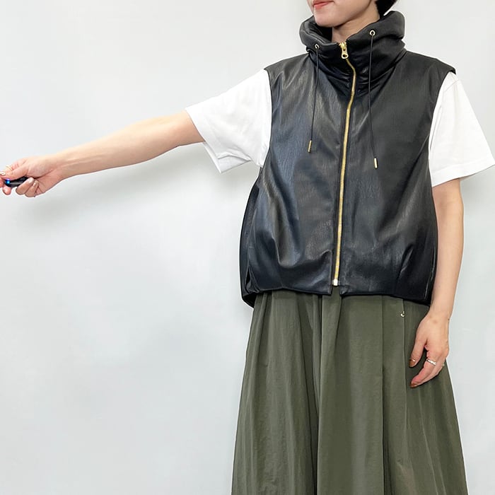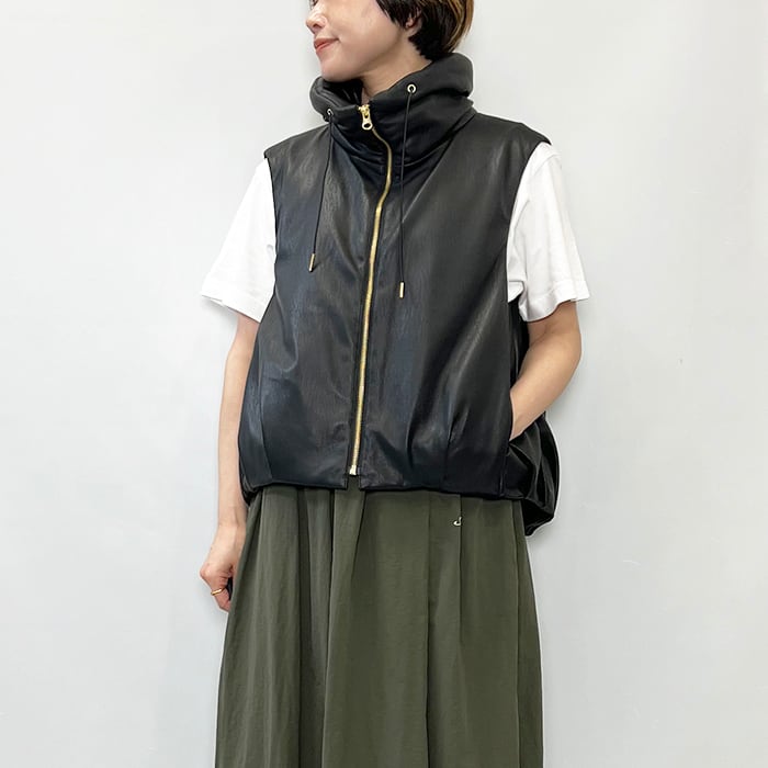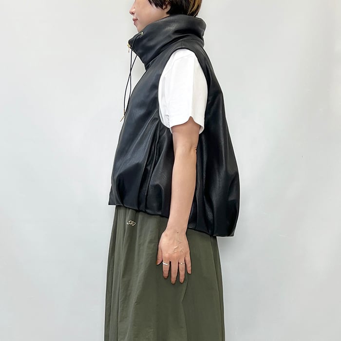 マットな質感とハリのある風合いで、モードな印象の中綿入りベスト。