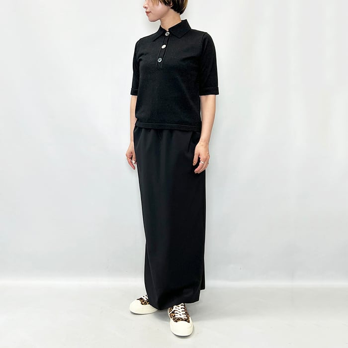 煌めくラメの存在感がモダンなポロニットは、ジャケットのインナーとしても活躍してくれます。