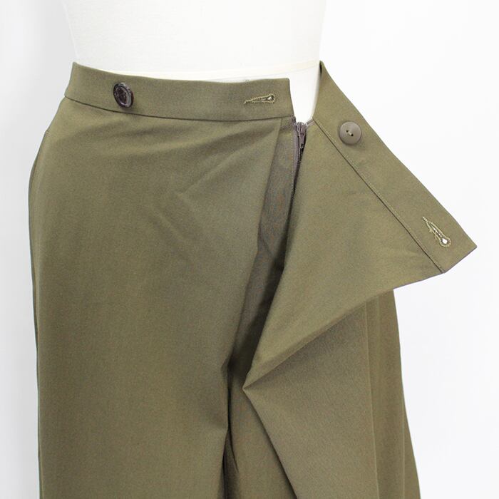 裾に向けて台形のような形になっているのがポイントのスカート見えするパンツ。