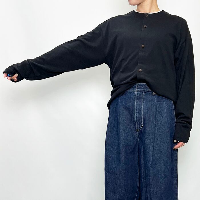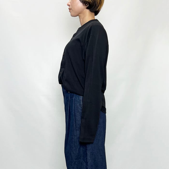 コットンとウールをブレンドしたこだわりの生地で作ったカーディガン。