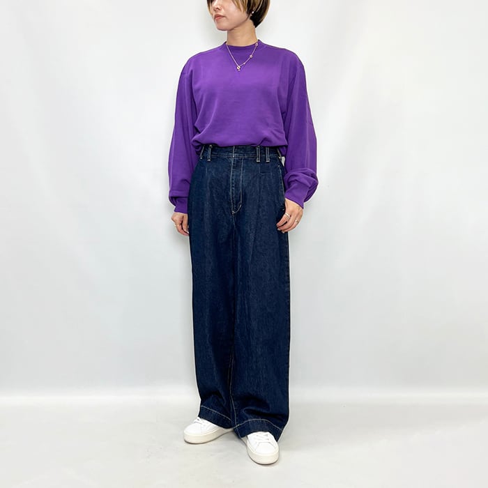インすることを前提に作っているので、裾にはリブをつけず、ボトムの中で生地がゴロつくのを軽減しています。