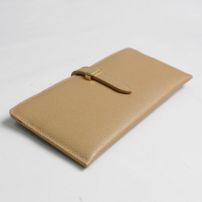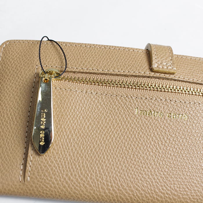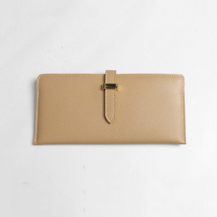 上質な牛革にゴールドの金具が上品なコンパクトロングウォレット。