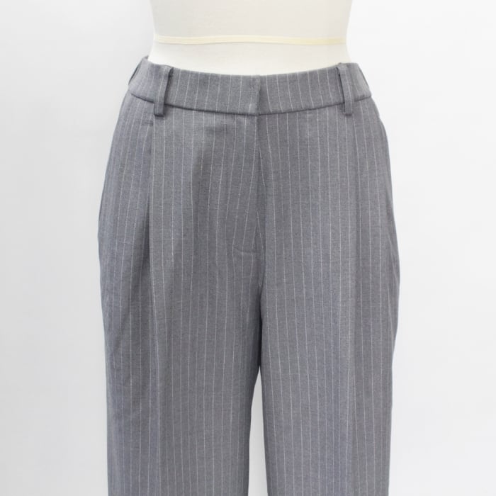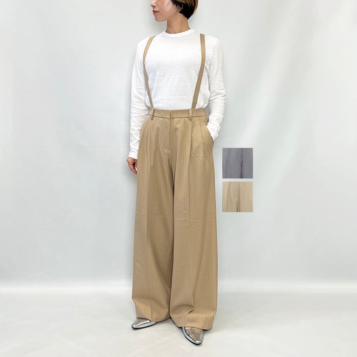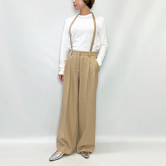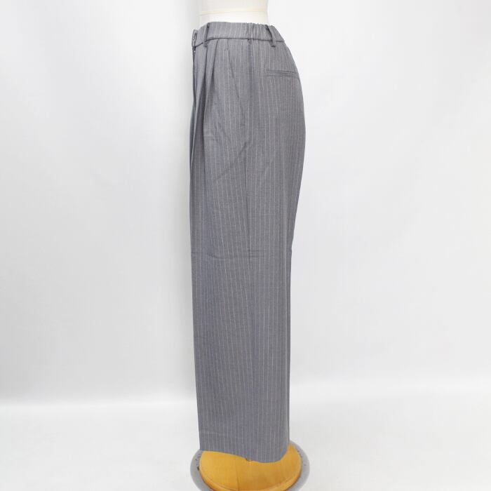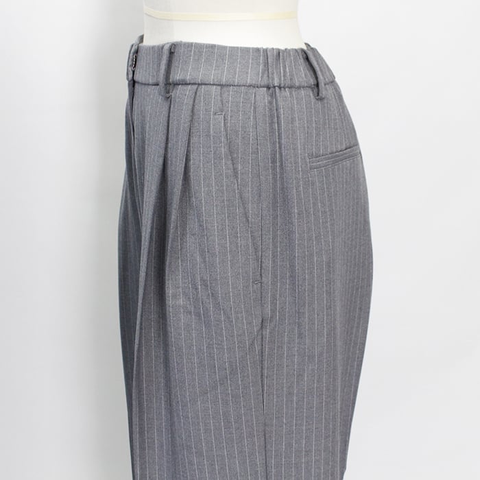 クリーンな表面感と暖かみのあるソフトな風合い仕上げが特徴のピンストライプ柄2wayタックパンツ。
