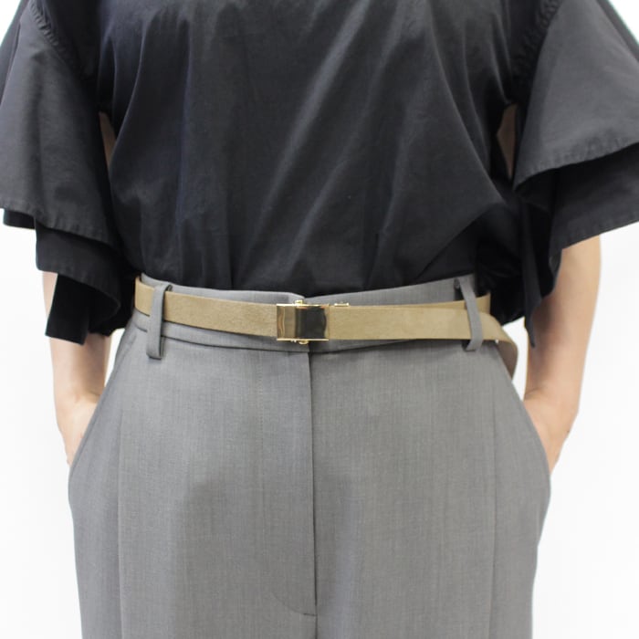 一見ラフな印象ですが、スエードベルト・ゴールドのバックルなどミニマルなデザインが魅力。