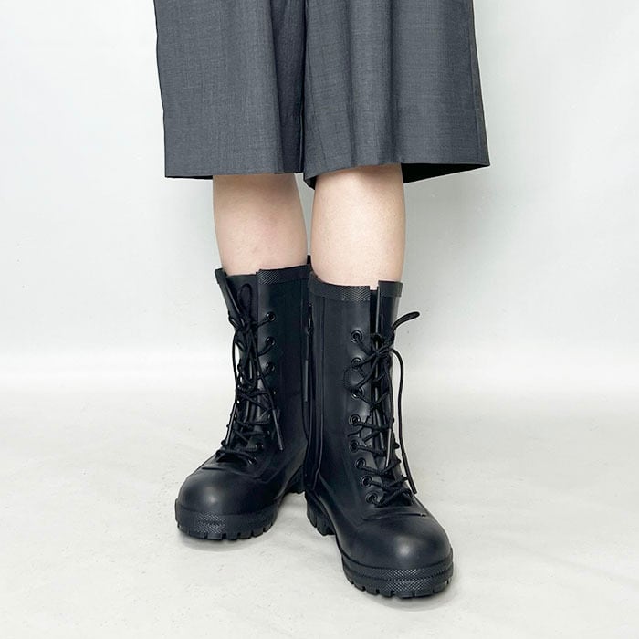 ゴム素材の柔軟性とレースアップ仕様でフィット性が高いブーツ。