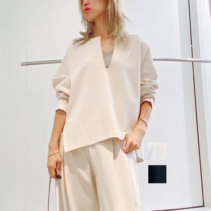 顔まわりに抜け感をプラスしてくれるプルオーバー。