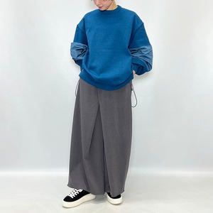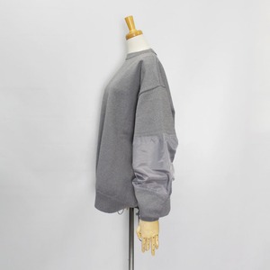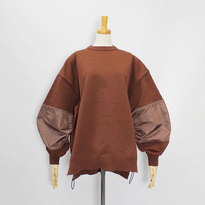 フォルムデザインは踏襲しつつ、スリーブデザインをアシンメトリーかつ異素材使いにしたデザイントップス。