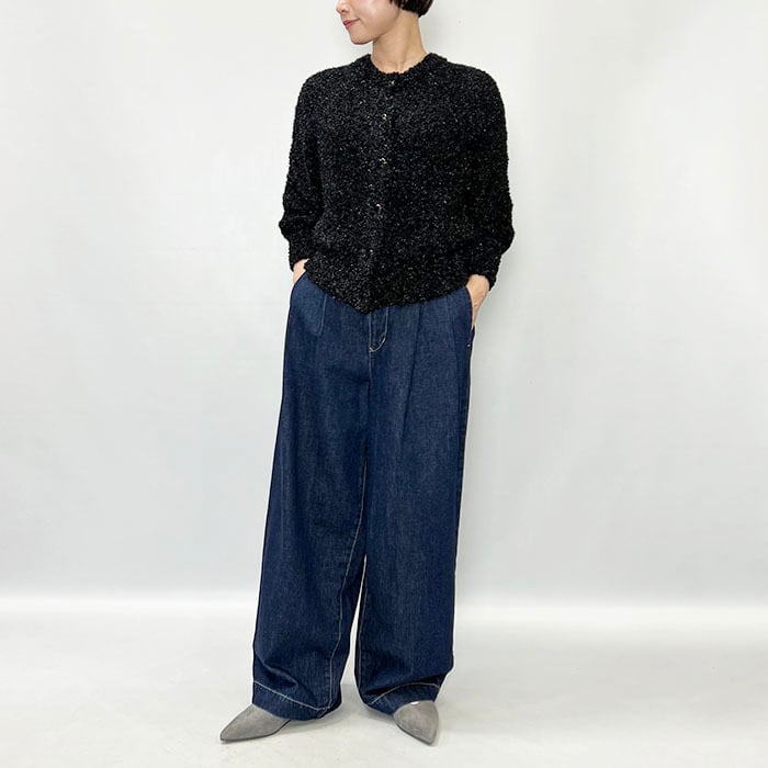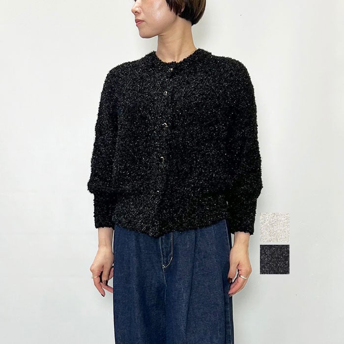 華やかなラメの輝きと上品な素材が特徴的なニットカーディガン。