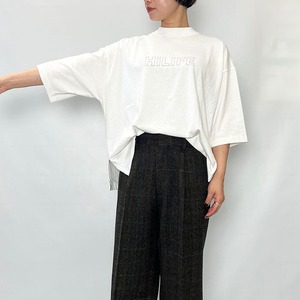胸元にロゴプリントを施した、オーバ ーサ イ ズのハーフスリーブTシャツ。