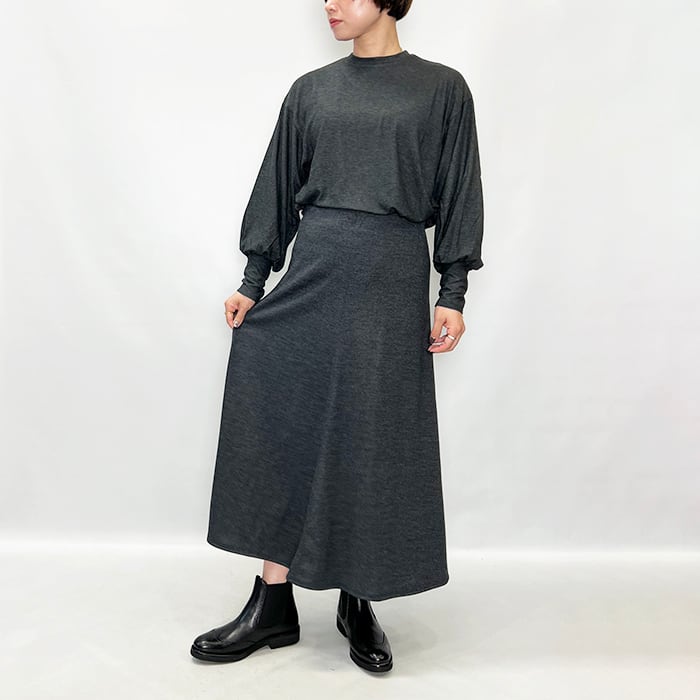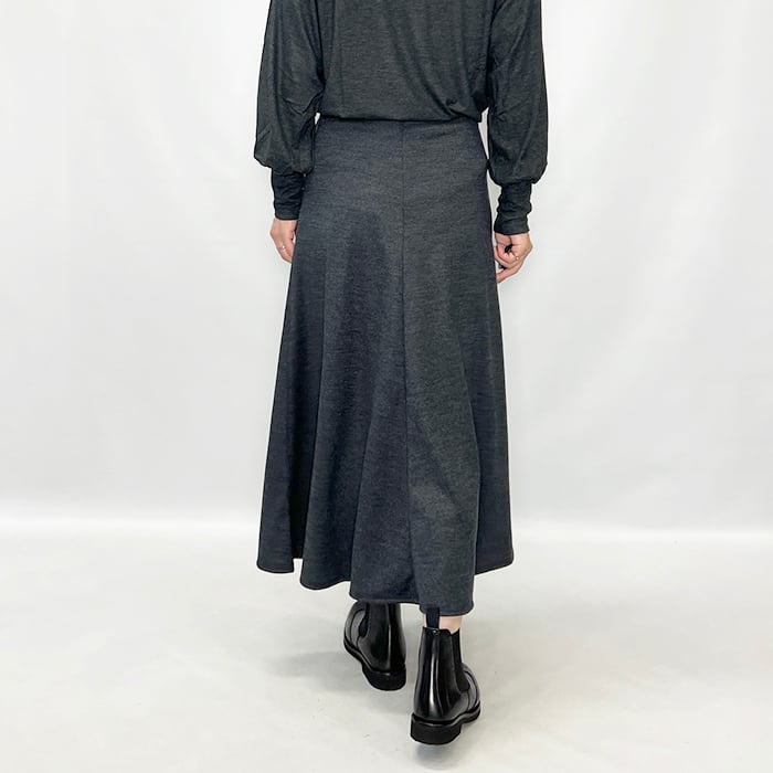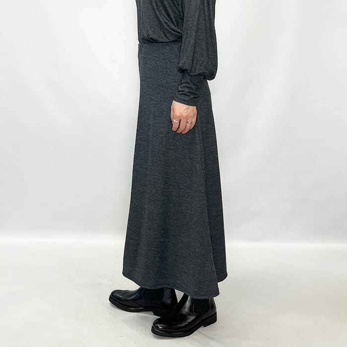 太番手ウールを微起毛で仕上げた、ソフトな風合いが魅力のウォッシャブル天竺スカート。