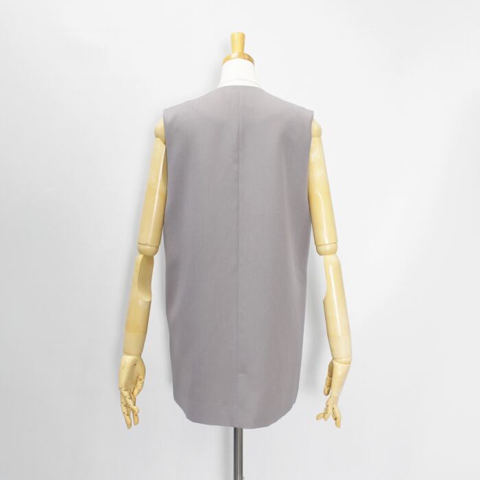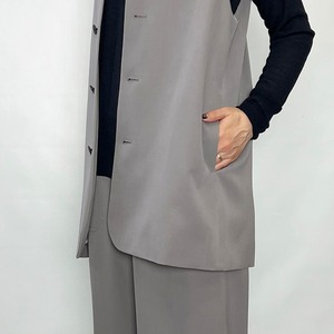 やや長めの着丈とすっきりとしたネックラインが、マニッシュな印象を引き立てる一枚。
