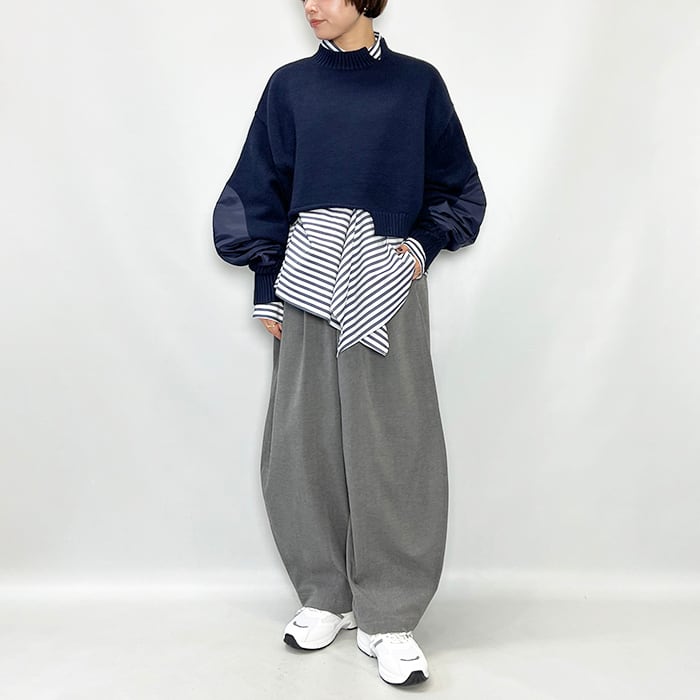 ウエスト下からの切り替えのカッテイングが動きがあり、デザイン性のある1枚に。
