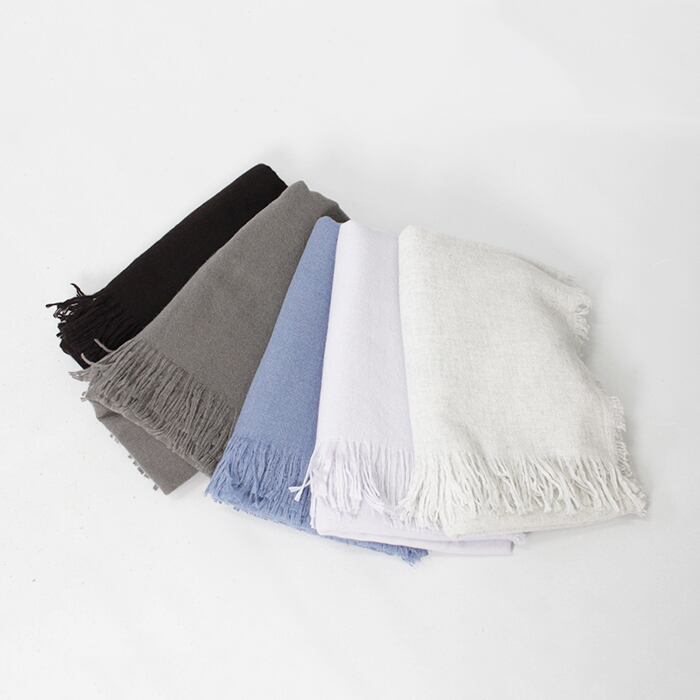 カシミヤ100%のしっとりとした質感で、適度な薄手で真夏以外、3シーズン使っていただけるストールです。