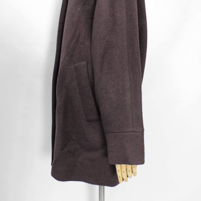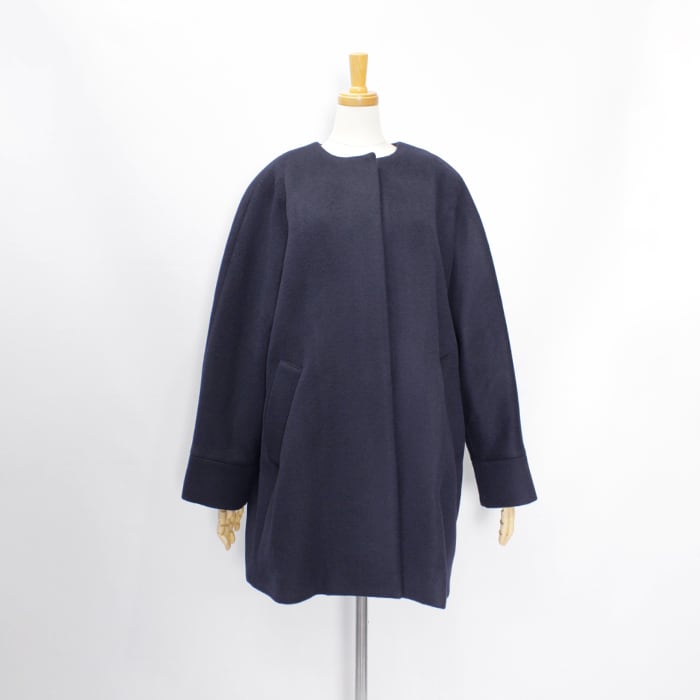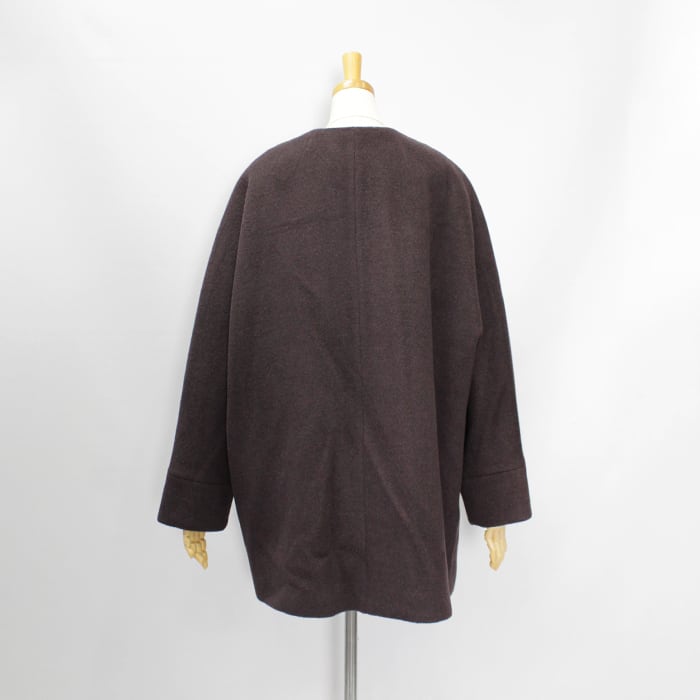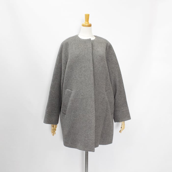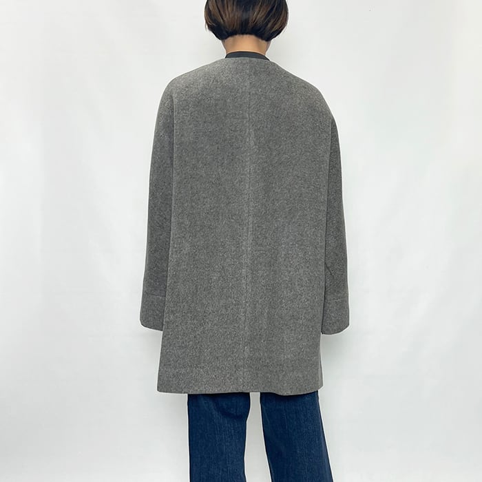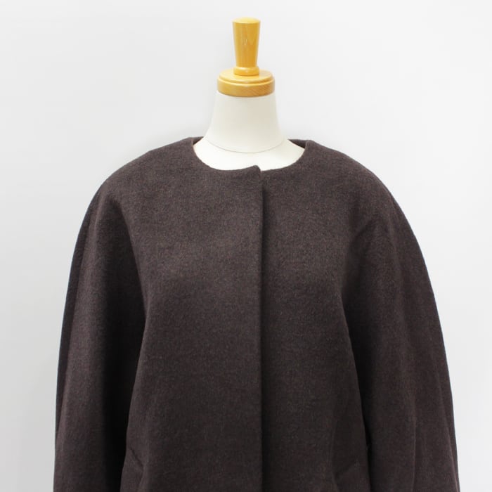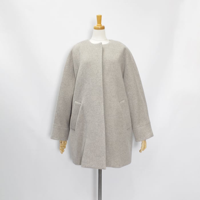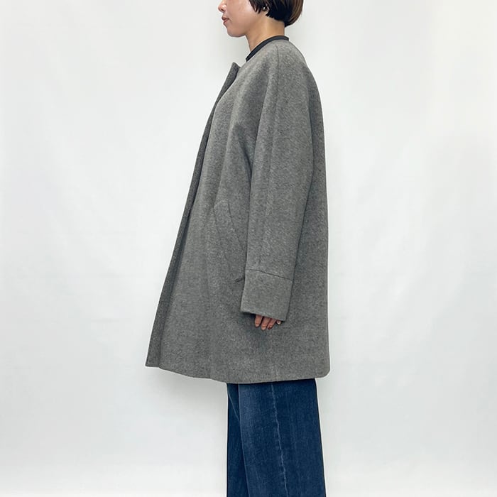 首元はシンプルなノーカラーデザインなので、スカーフやストールなども合わせやすいデザイン。