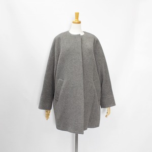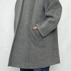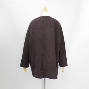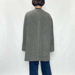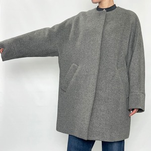 テントコートのディテールをいかしたノーカラーコート。