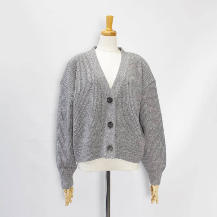 ざっくりと羽織れるゆったりシルエットが魅力のショートニットカーディガン。