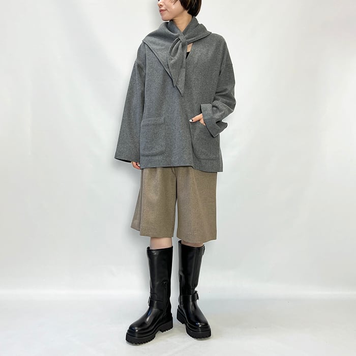 スカーフとのセット使いでよりまとまりのあるスタイリングが完成します。