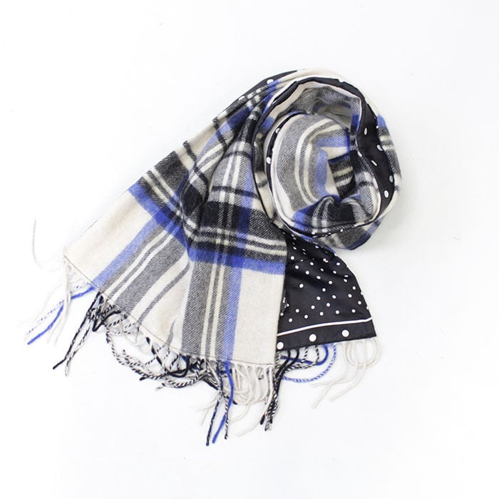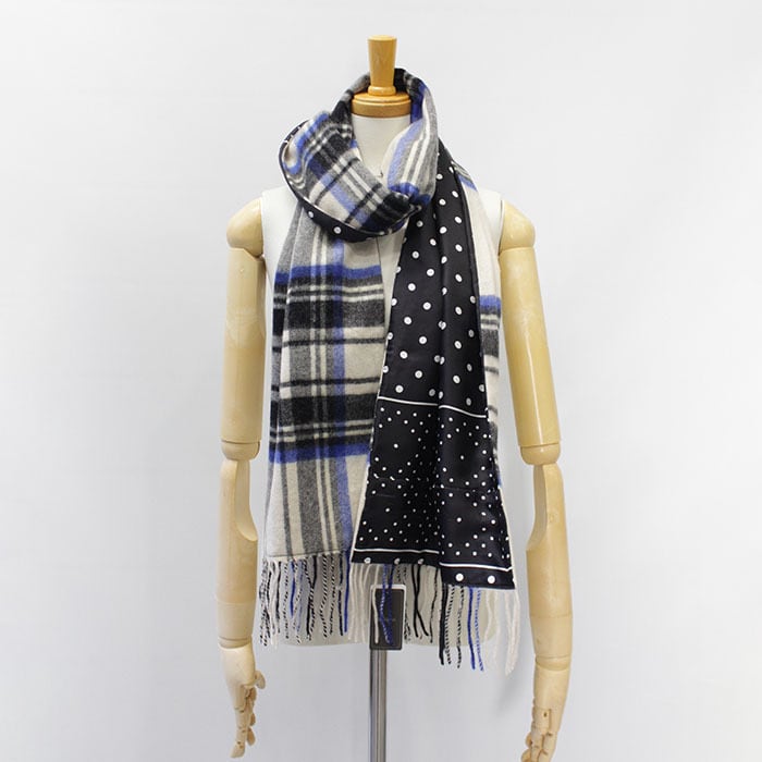 manipuriの人気の柄とチェック柄が組み合わさって、巻いた時に違う柄が見える
