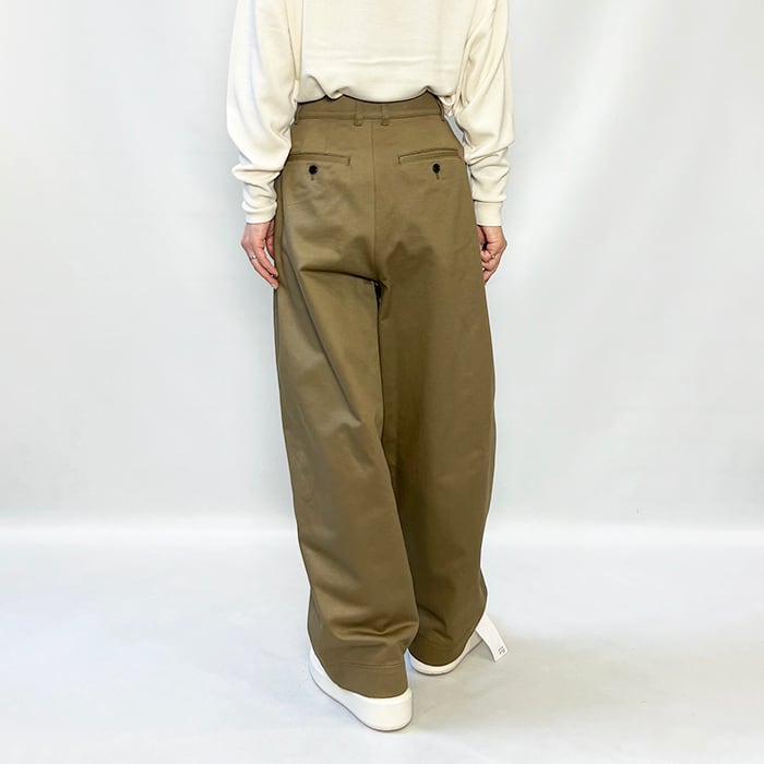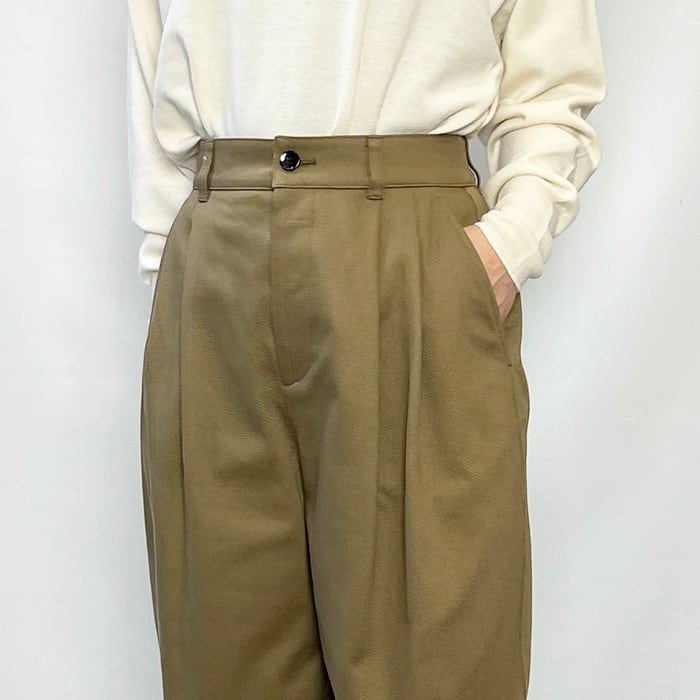 太番手コットンを高密度に織り上げたツイル素材を使用したチノパンツ。