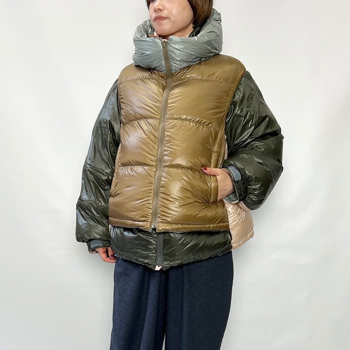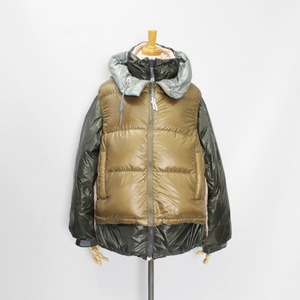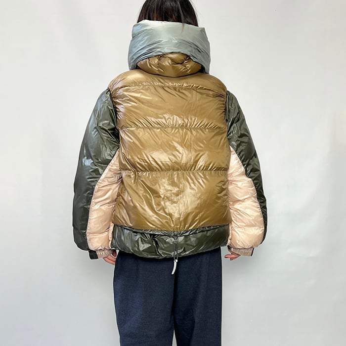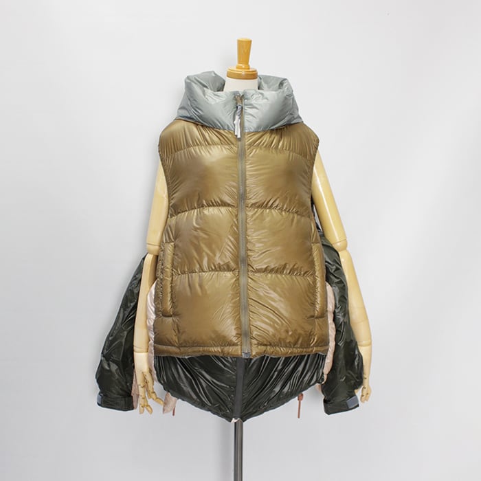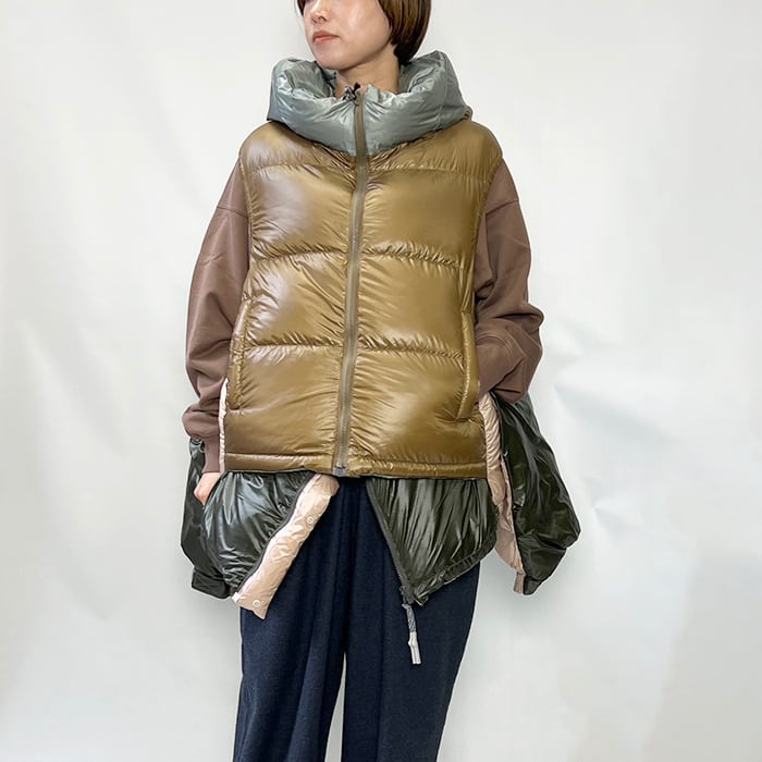 ベスト側のフードは収納してスタンドカラーとしても楽しめるデザイン。