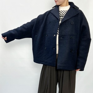 ドルマンPコート型でゆったりとしたシルエットがトラッド感があり、コクーンシルエットが落ちることなく決まるデザインになります。