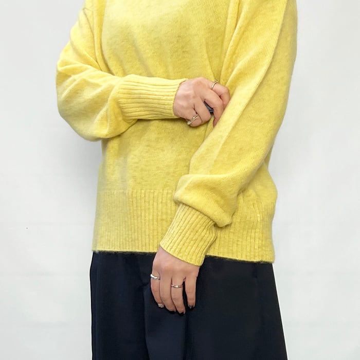 ゆったりしたサイズ感でワイドパンツなどボリュームのあるボトムスやスカートとも相性が抜群。