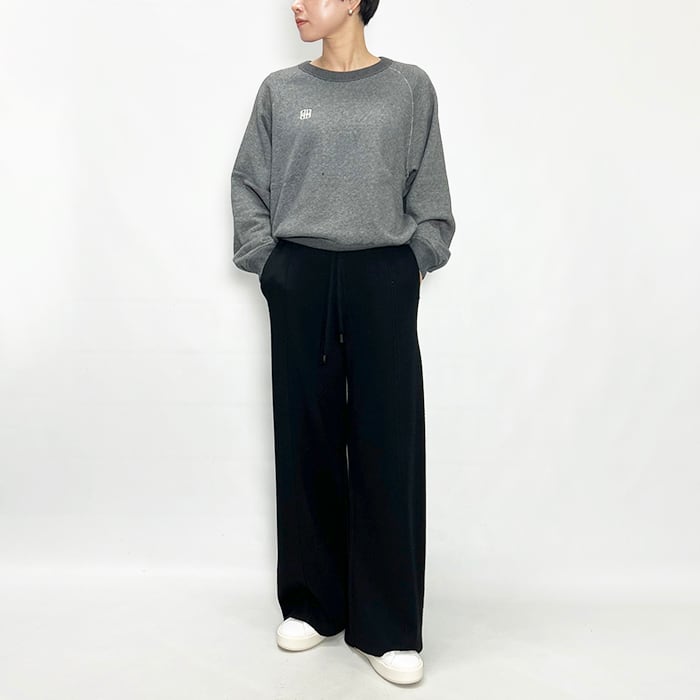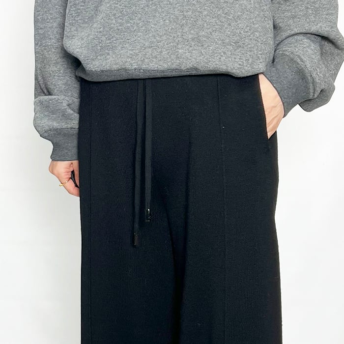 センタープレス風の仕様と、少し厚みのあるスムース編みで、
