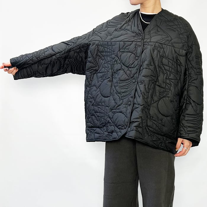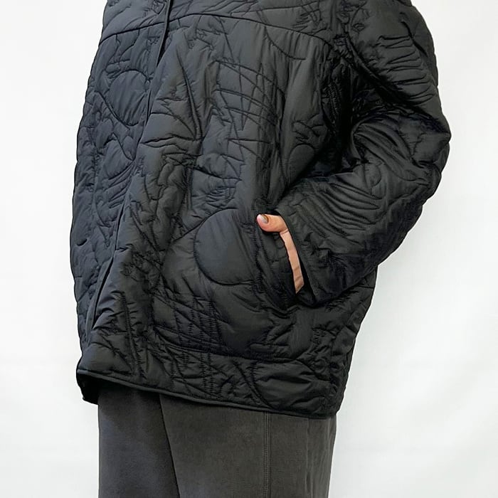 丸みのあるフォルムが特徴的な、リバーシブルのキルティングジャケット。