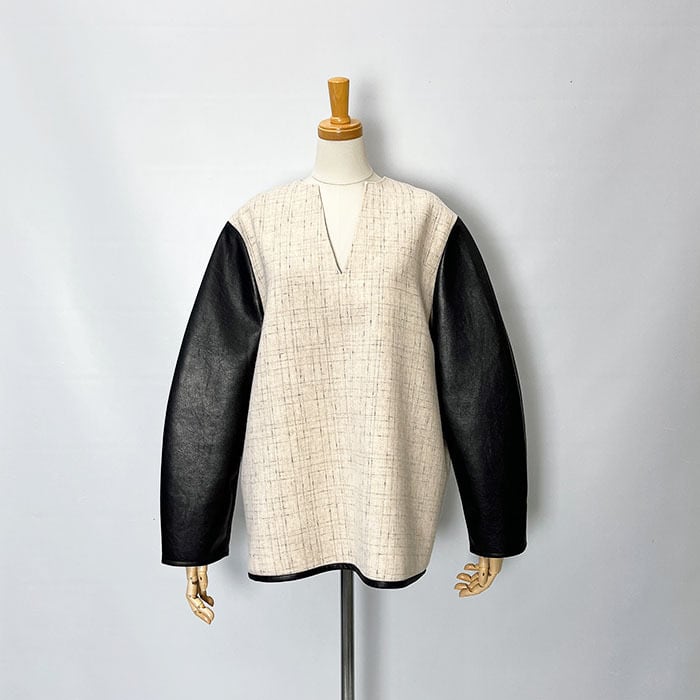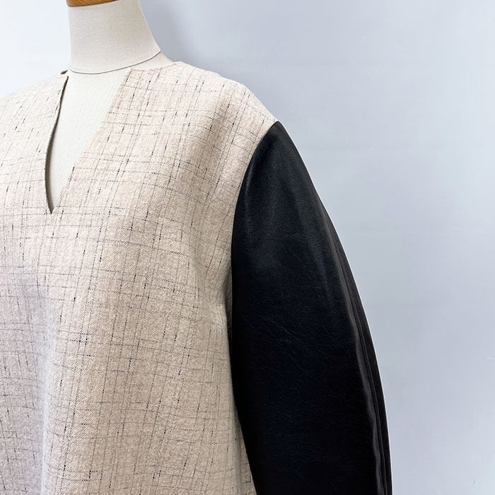 柔らかく膨らむラウンドスリーブが構築的な陰影を生み、