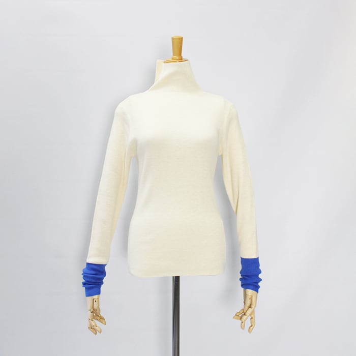 袖のバイカラーがHeRINらしい配色ニット。
