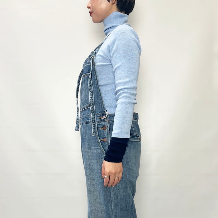 ハイゲージのリブ編みで、伸縮性があり適度に体にフィットします。