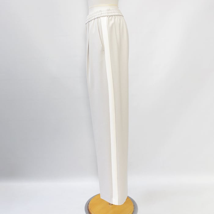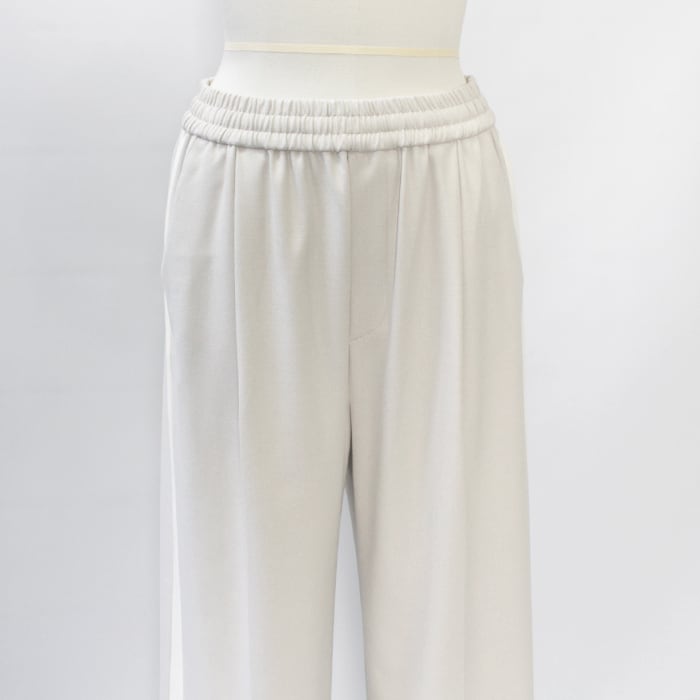 キレイなストレートシルエットを保ちつつ、ウエストがゴムなのでイージーに体型を選ばす穿きこなせます。