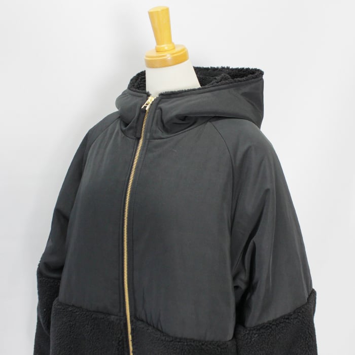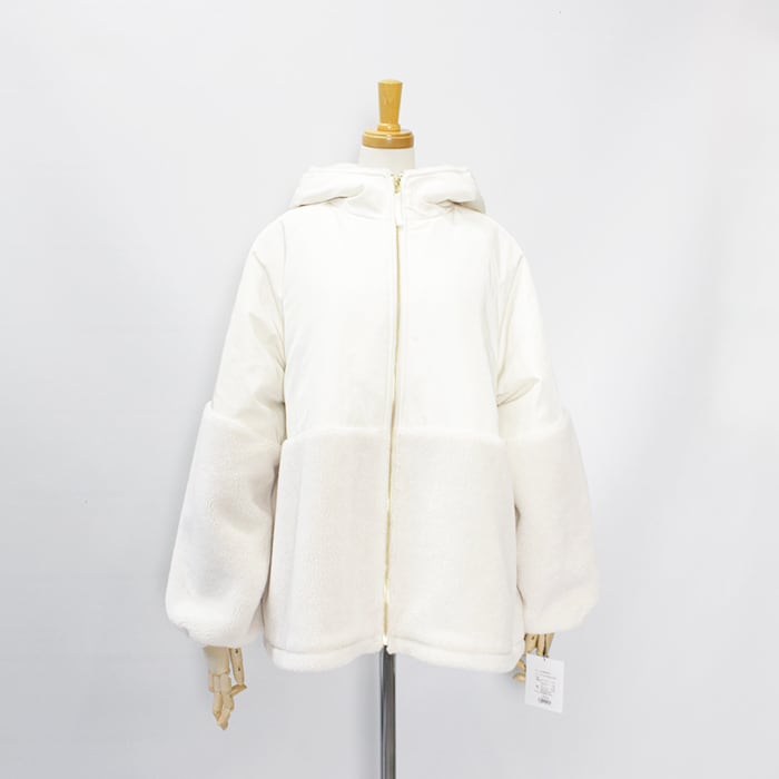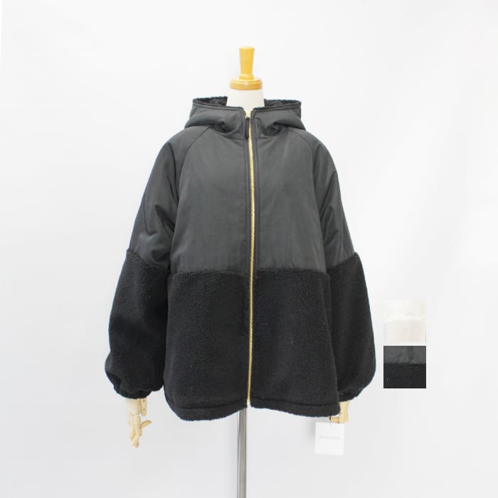 アウトドアな印象の強いフードブルゾンを、ボアとドッキングすることによりシティでも着回せるように仕上げました。