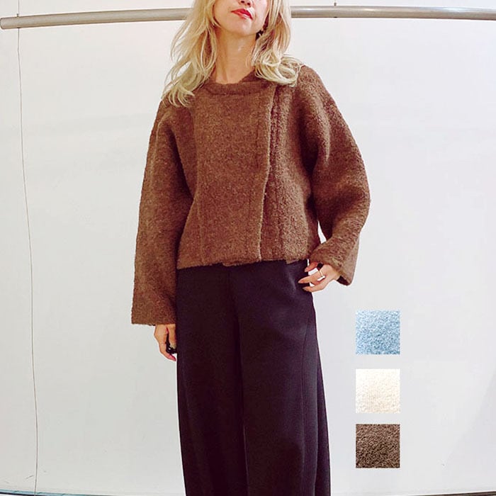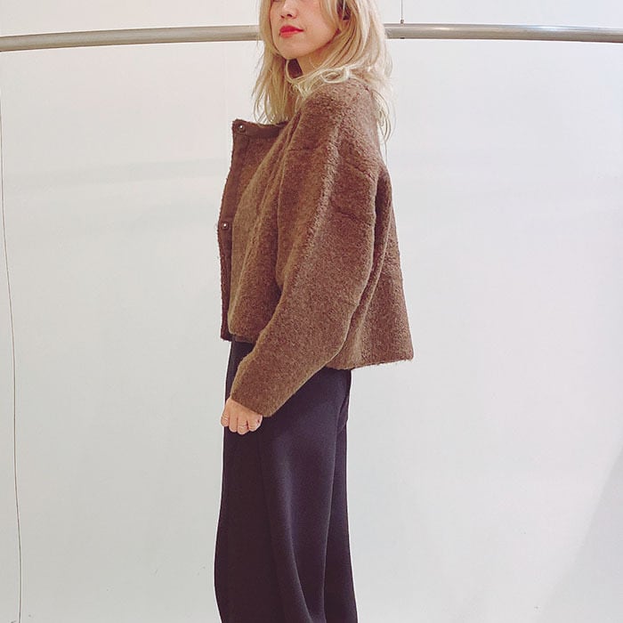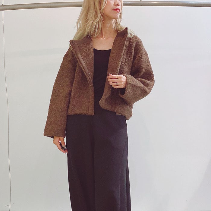 接結編みにすることでボアの風合いそのままに程よいハリ感があり、