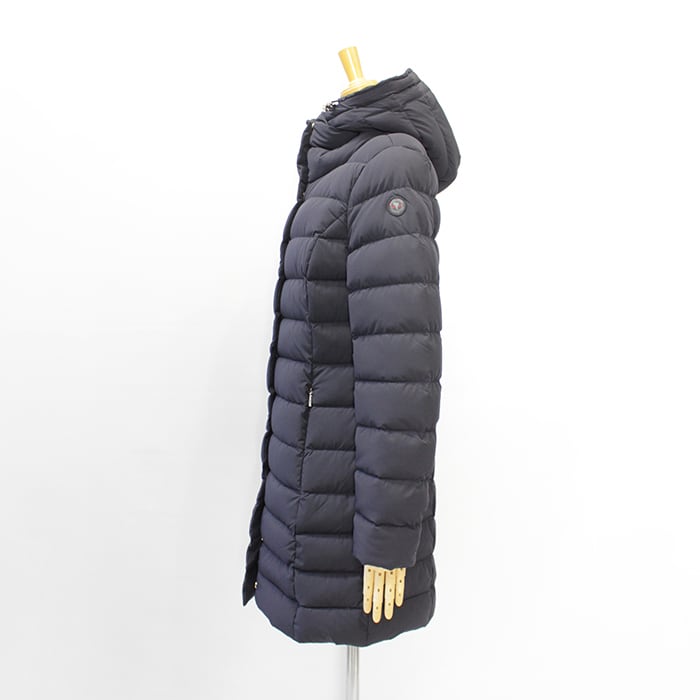 マットな質感とウエストシェイプが女性らしいダウンコートです。