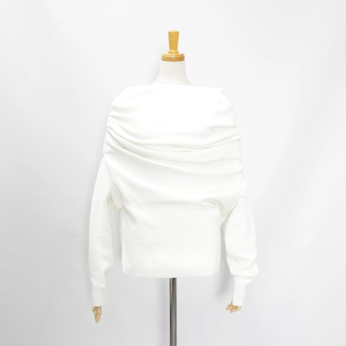 片方をドロップすれば、ワンショルダーデザインも楽しめる一枚。