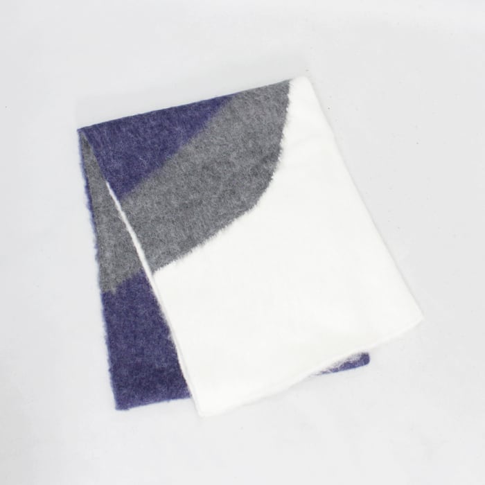 揺らぎのあるニュアンス柄を描いたジャガード編みが印象的なニットストール。